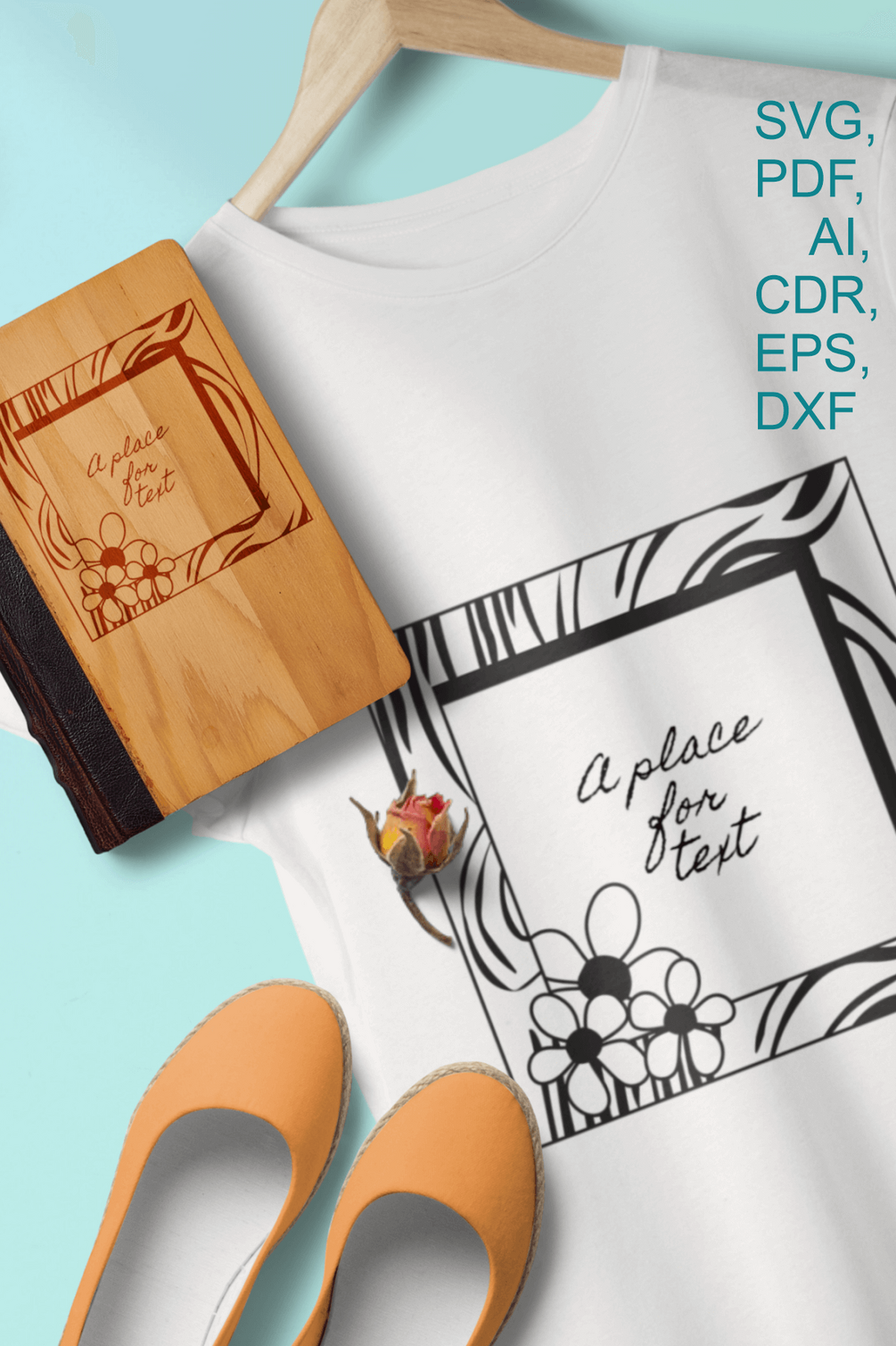 Printable and cuttable square frame with flowers and wood texture clipart.