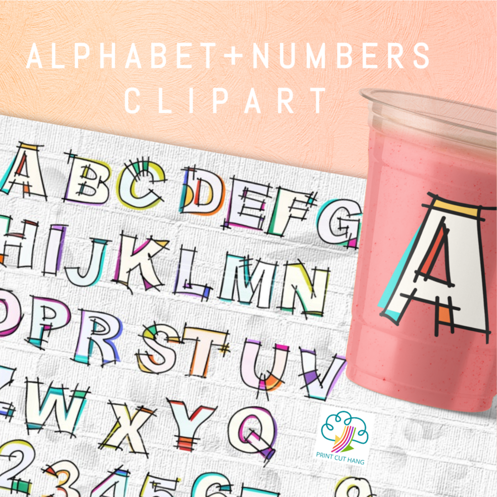 The whole alphabet and numbers are digitally hand-drawn by Print Cut Hang.