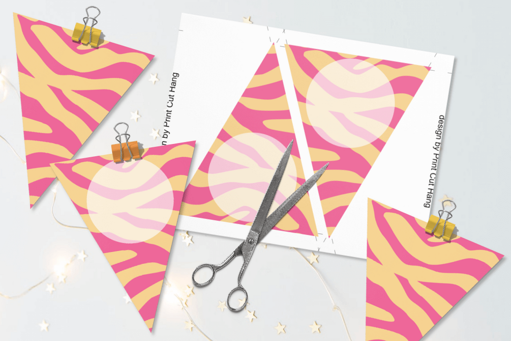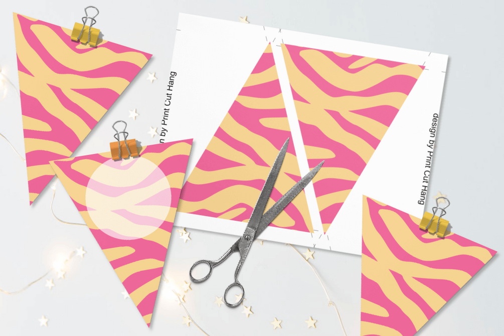 Printable Pink Yellow Zebra Patterned Party Pennants