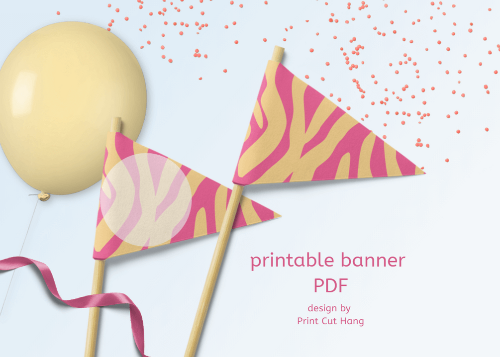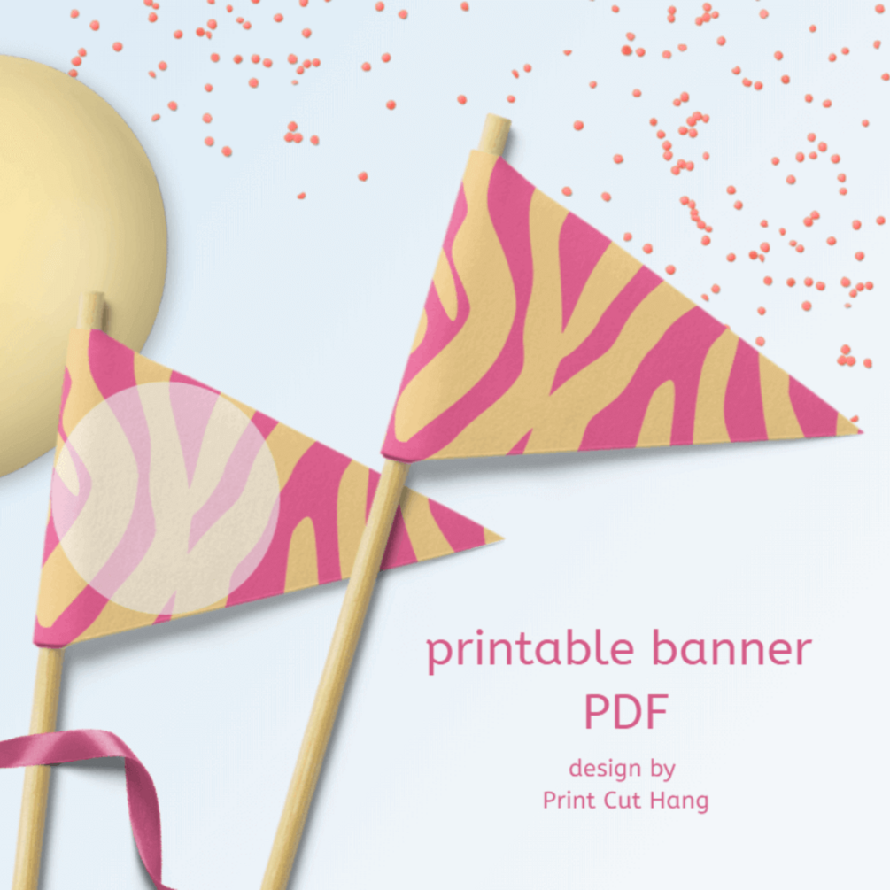 - pink and yellow printable party flags with zebra animal pattern