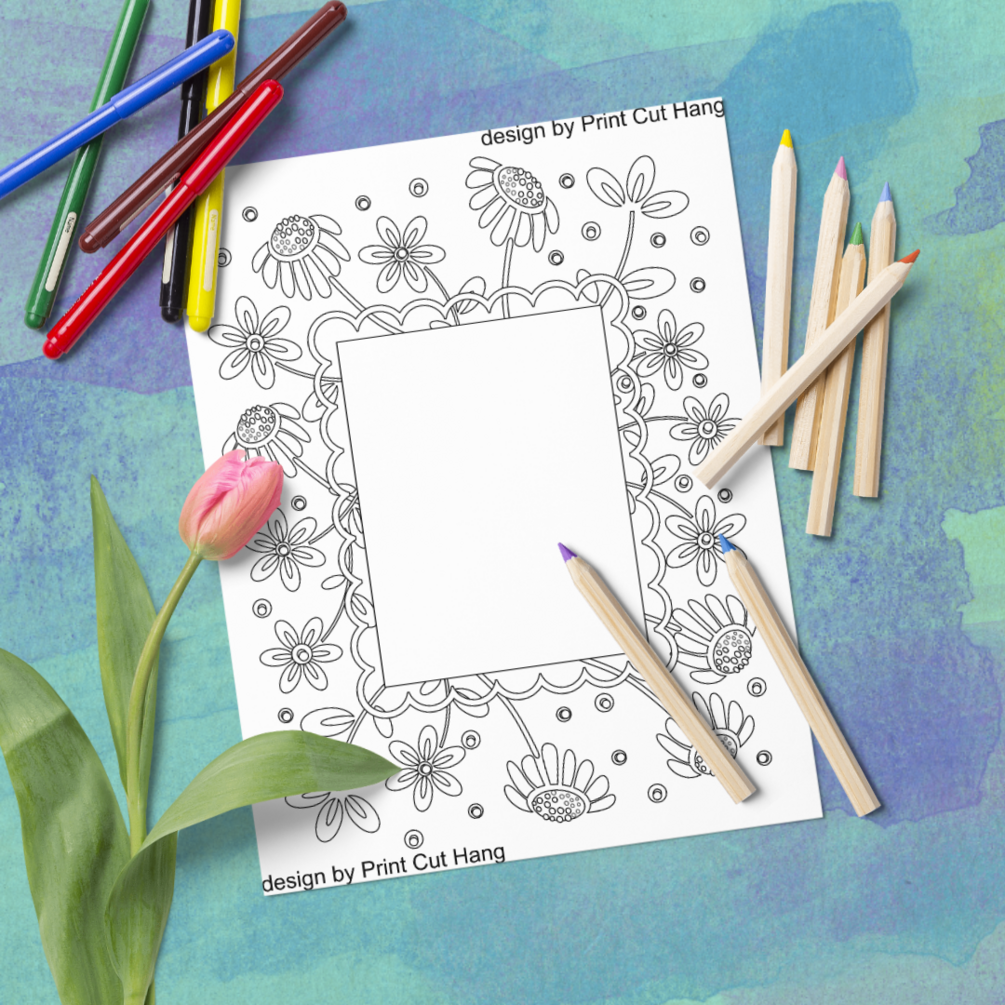 Instant download floral frame coloring page for little and big kids. Using coloring pencils and drawing is great art therapy.