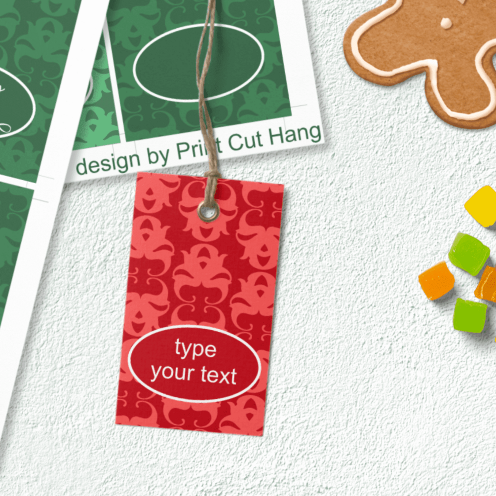 Free Christmas Red and Green Damaks Tegs - printable gift tags template - editable PDF file.