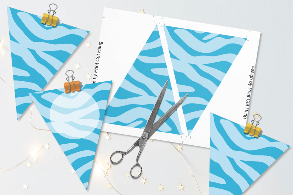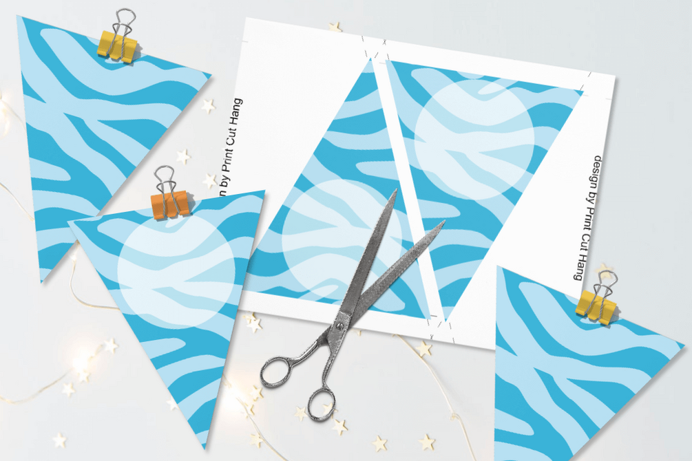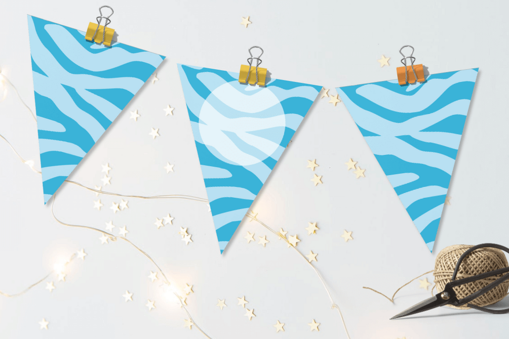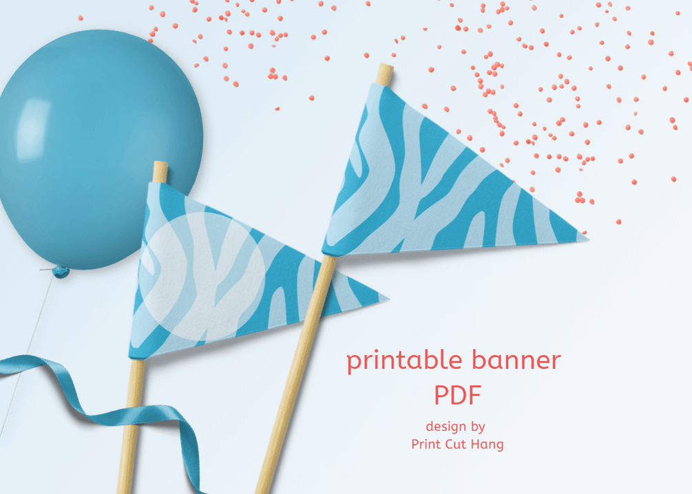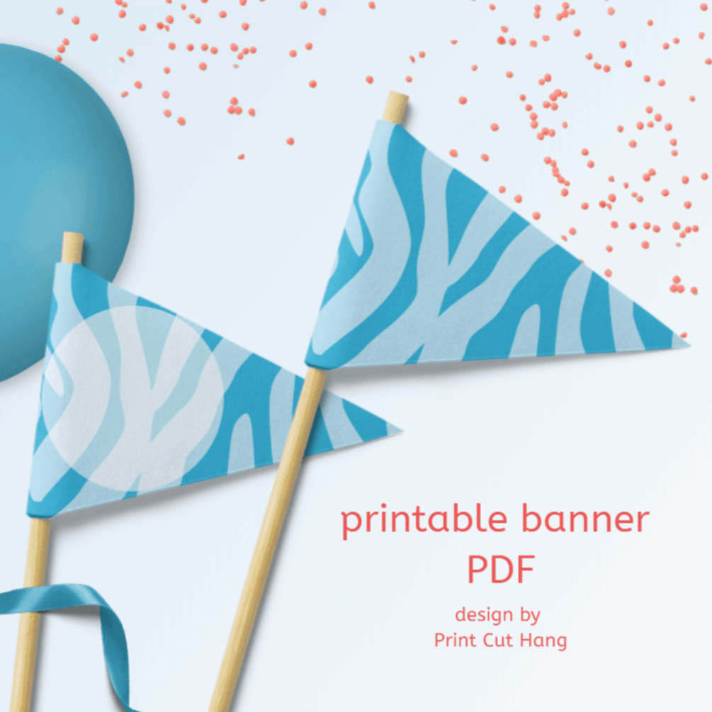 Printable light blue party pennants with zebra pattern for birthdays, spring holidays and events...