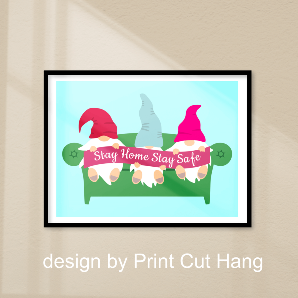 FREE ''Stay Home Stay Safe'' with Gnomes Printable Poster PDF PNG
