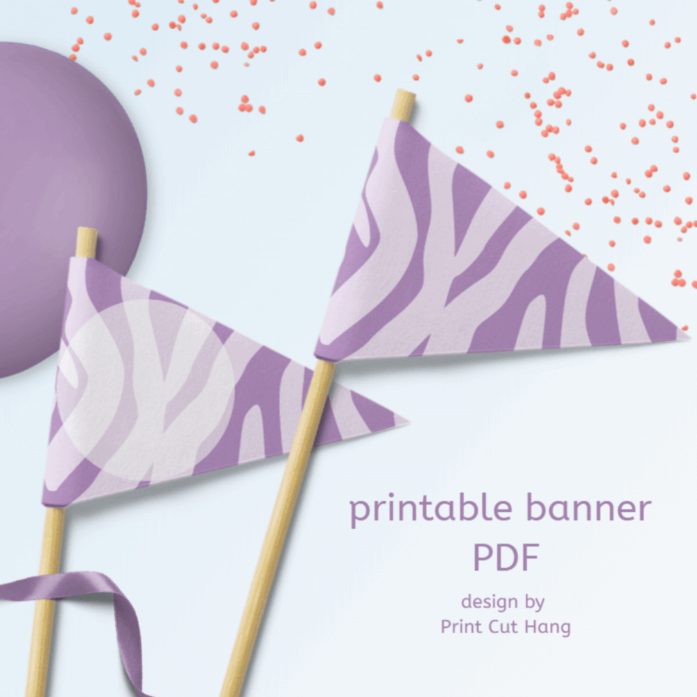 Printable purple zebra party garland for girl's birthdays, baby showers...