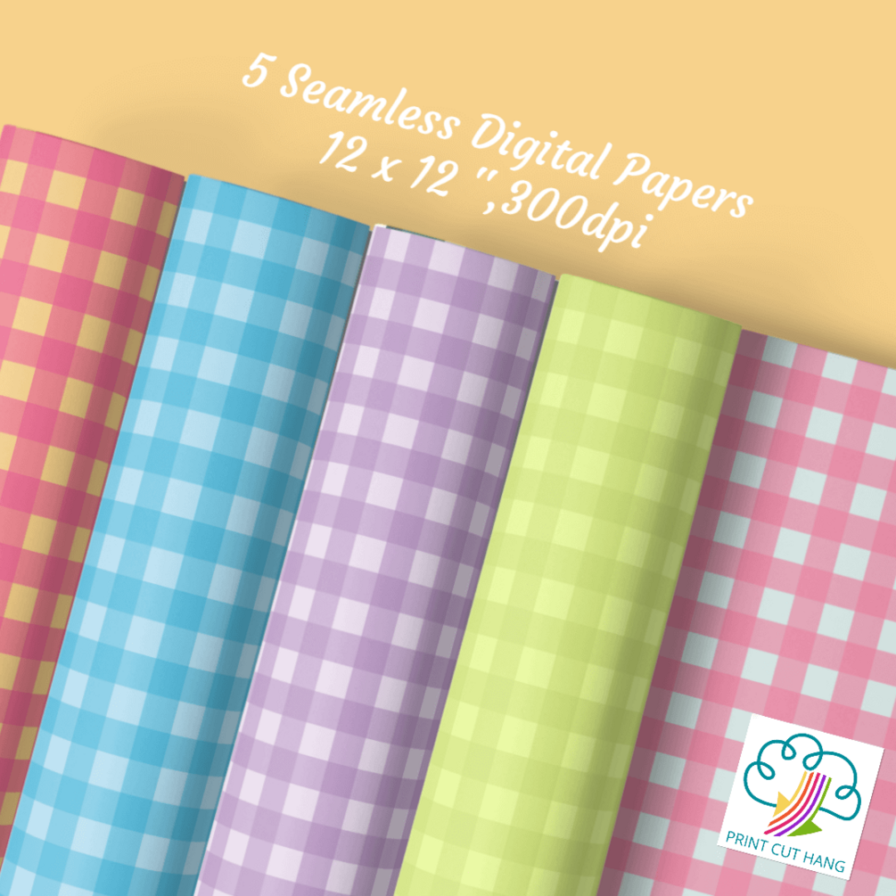 Spring Colors Gingham Digital Papers Set of 5 PNG files
