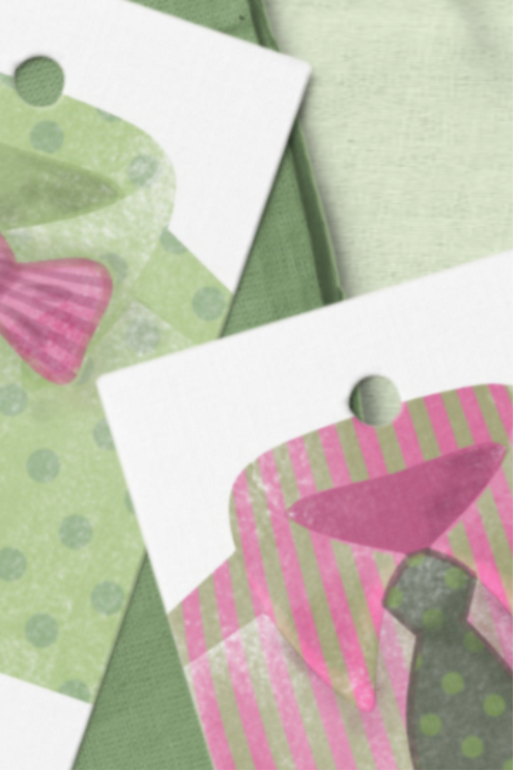 Green and pink watercolor gift tags, printable and editable tags templates with men's shirt illustrations, for Father's Day and men's birthdays.
